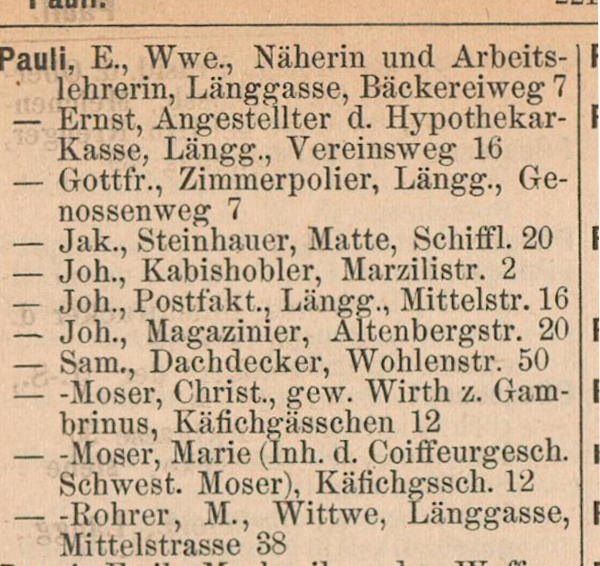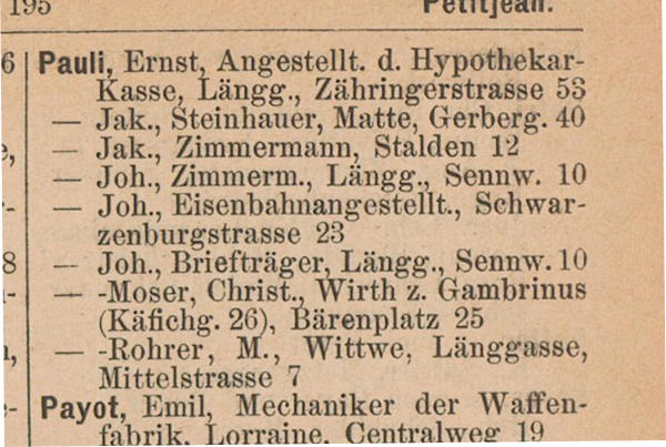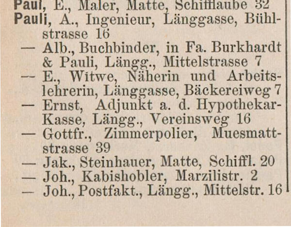 Jakob Pauli, der Vater von Johann Jakob lebte in Bern an der Matte.